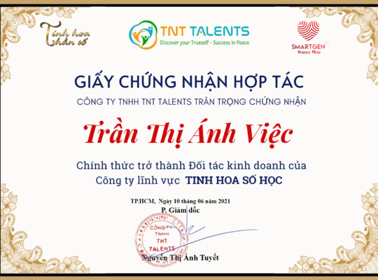 Chào mừng chị TRẦN THỊ ÁNH VIỆC chính thức trở thành Đối tác của TNT Talents mảng Tinh Hoa Số Học.