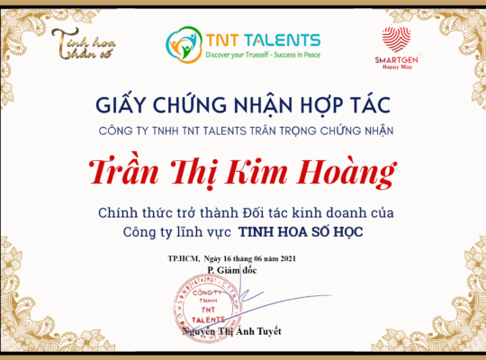 Chào mừng chị TRẦN THỊ KIM HOÀNG chính thức trở thành Đối tác của TNT Talents mảng Tinh Hoa Số Học.