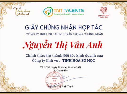 Chào mừng chị Nguyễn Thị Vân Anh chính thức trở thành Đối tác của TNT Talents mảng Tinh Hoa Số Học.