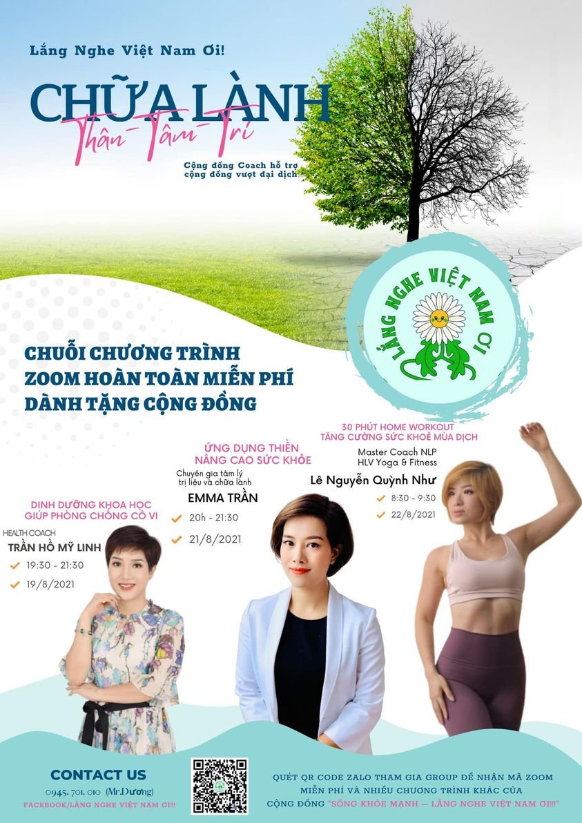 Đây là chuỗi chương trình miễn phí, chủ đề chữa lành Thân Tâm Trí tuần này, quà tặng đặc biệt của dự án LẮNG NGHE VIỆT NAM ƠI! dành cho tất cả mọi người để cùng vượt qua đại dịch.